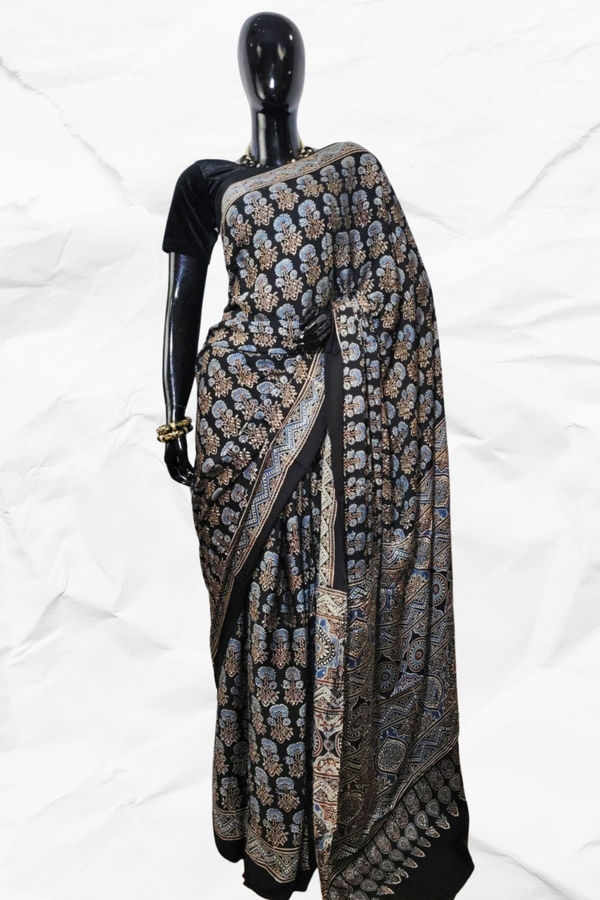 The Ajrakh block printed saree is a beautiful and unique piece of...