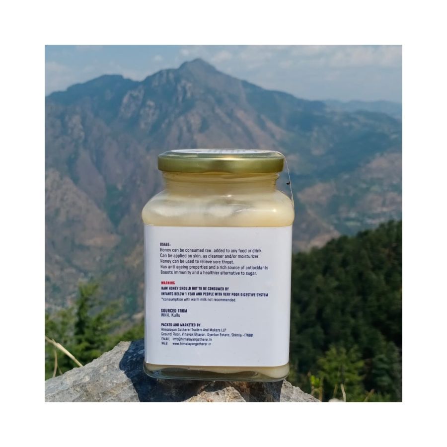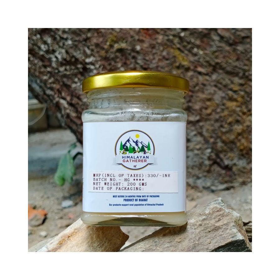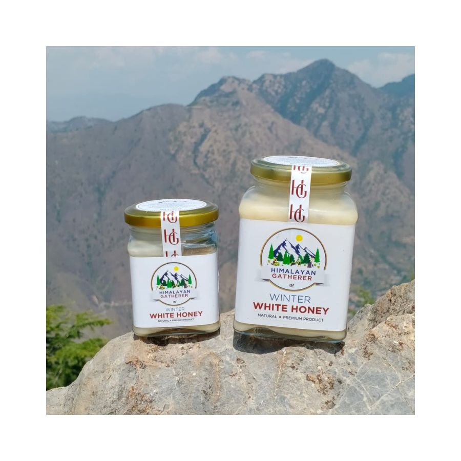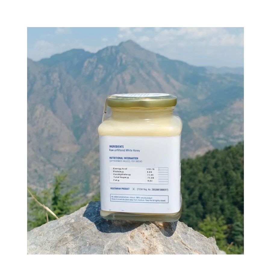 COLLECTED FROM VARIOUS SOURCES IN THE HIMALAYAN REGION, WHITE HONEY HAS A GENTLE TASTE AND IS CREAMIER AND SOFTER IN TEXTURE THAN ORDINARY HONEY. THE WHITE COLOR AND CREAMY TEXTURE OF THIS HONEY ARE UNIQUE DUE TO MINIMUM FLORA IN THE WINTER SEASON.